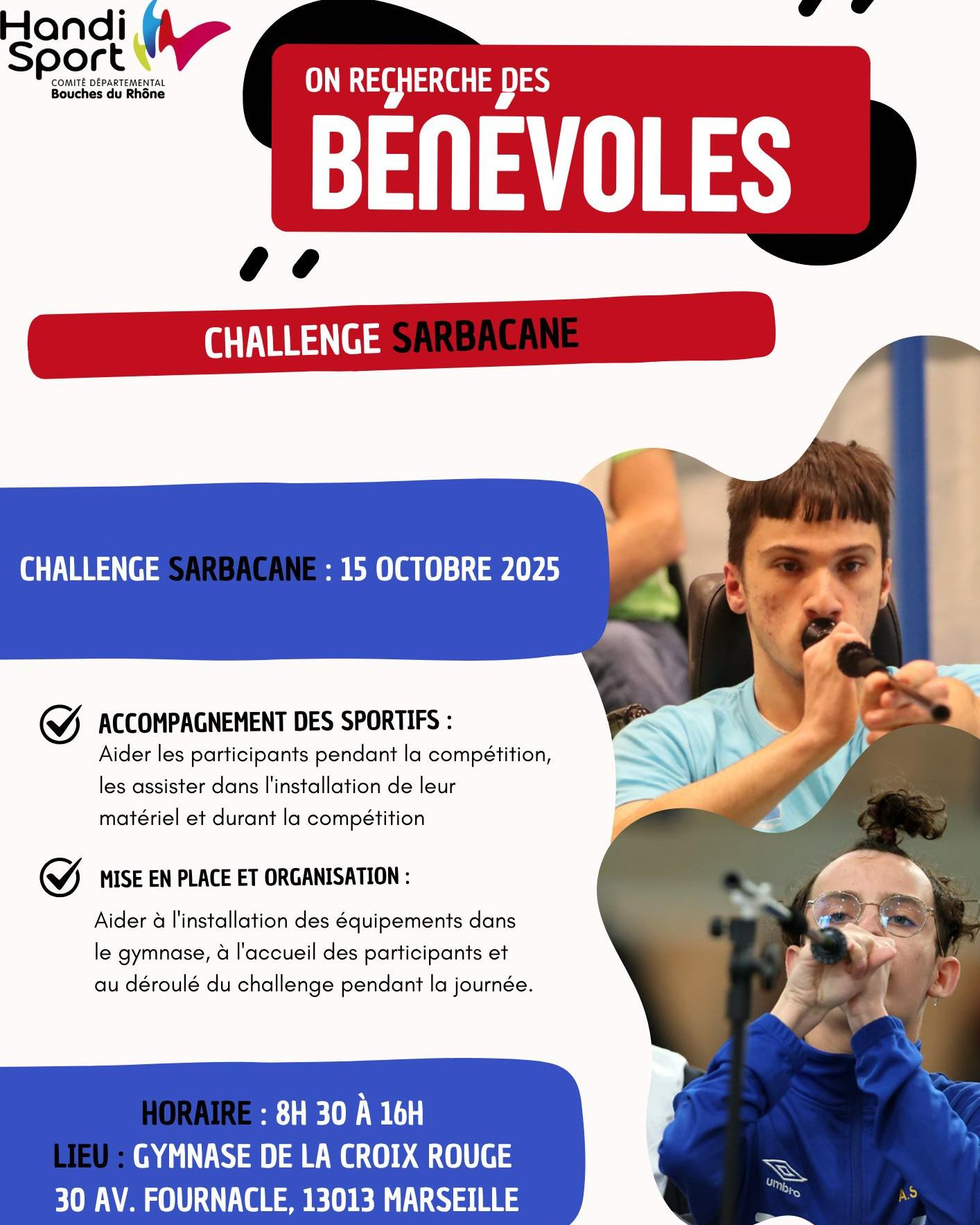 Le Comité Départemental Handisport 13 recherche des bénévoles !