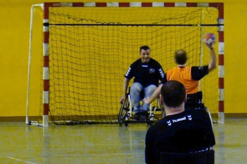 Le hand fauteuil est un sport collectif d’opposition, où l’objectif est d’envoyer à la main un ballon dans le but adverse, tout en empêchant l’adversaire d’en faire autant.